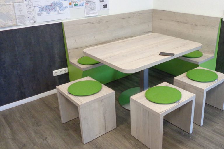 Helle und moderne Büro-Ecksitzbank Ein individuell erarbeitetes Rundum-Paket wurde für eine neue Sitzbank konzipiert. Um das bereits bestehende Raumkonzept des Büros zu erweitern, wurde Bezug…