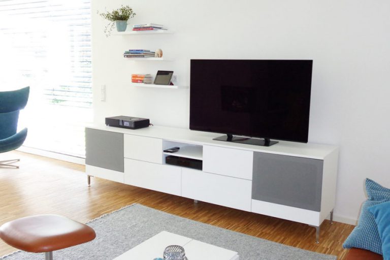 Für Hi-Fi Fans – Sideboard mit Lautsprecherfronten Kundenwunsch: Ein Sideboard mit integrierten Hi-Fi Komponenten und Stauraum um die Hi-Fi Anlage platzsparend zu verstauen. Das Ergebnis:…