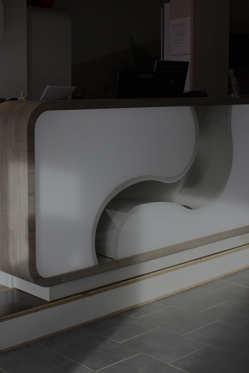 Modernes Holz-Interieur lädt zur Beratung ein In Zusammenarbeit mit der Firma Amecko GmbH wurde ein neuer einladender Beratungsraum geschaffen. Die Werkplanung führte Tischlerei Klammer aus.…